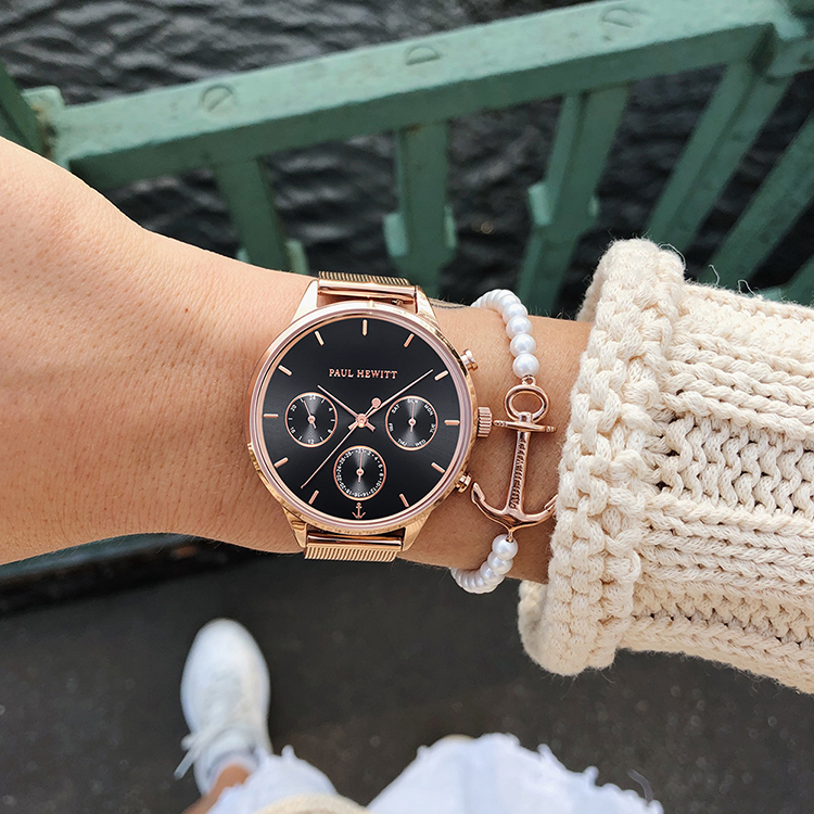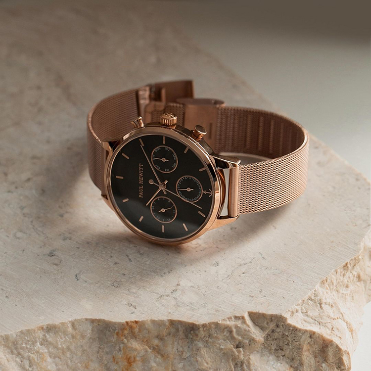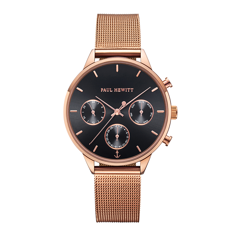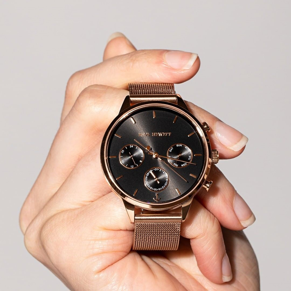 黑面時尚玫瑰金米蘭帶計時腕錶